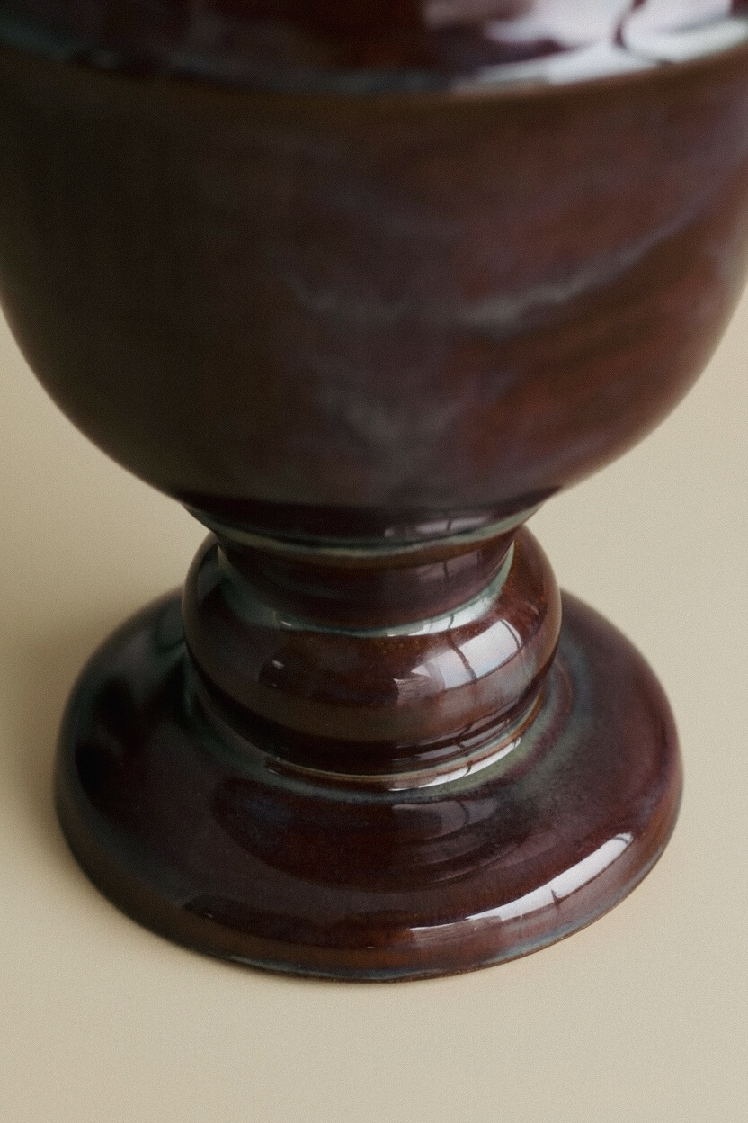 This ceramic vase is wheel-thrown by hand and finished using traditional pottery techniques. Each piece is individually made from the beginning, shaped slowly on the potter’s wheel and hand-glazed in a deep brown glaze.